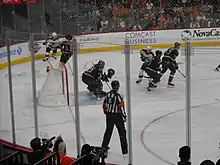 - ↑ Wyshynski, Greg (4 November 2013). "Blame referee, Gary Bettman for Ray Emery skating on goalie assault". Puck Daddy. Retrieved 5 November 2014.