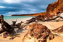 A pearling camp was established on the peninsula at Herald Bight in the 1880s and the remains of the shells can still be found along the beach.