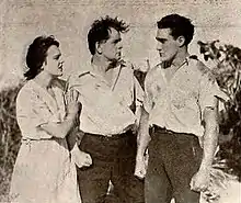 ![]() Still from The Isle of Destiny (1920) with Hazel Hudson, Paul Gilmore, and Frank D. Williams. | |