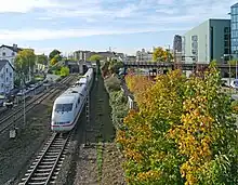 The line between Frankfurt and Aschaffenburg is the line with the most Intercity-Express trains in Germany, with nine ICE services running at least every two hours.