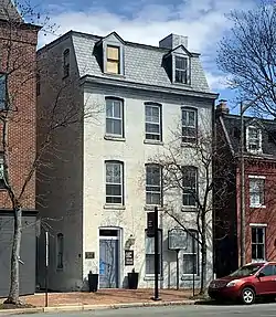 The Franklin and Armfield Office, which houses the Freedom House Museum, is a historic commercial building in Alexandria, Virginia (until 1846, the District of Columbia). Built c. 1810–1820, it was first used as a private residence before being converted to the offices of the largest slave trading firm in the United States, started in 1828 by Isaac Franklin and John Armfield. "As many as [a] million people are thought to have passed through between 1828 and 1861, on their way to bondage in Mississippi and Louisiana".[4] Another source, using ship manifests (lists of slaves) in the National Archives, gives the number as "at least 5,000".[5]