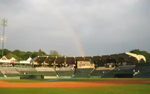 Fraser Field hosted only scholastic and city leagues until Jonathan Fleisig brought the Massachusetts Mad Dogs of the independent North Atlantic and Northeast leagues to Fraser Field from 1995 until 1999.[3] By 1999, the concrete of the cantilevered roof had deteriorated so badly that the central seating section had to be roped off. The Mad Dogs announced a one-year hiatus from baseball and reopened in 2002 in Pittsfield, Massachusetts as the Berkshire Black Bears.