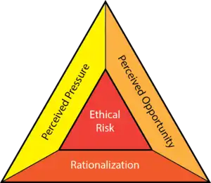 The causal factors that should be removed to deter fraud (as described above) are best described in the Fraud or Compromise Triangle. This idea was first put forward in an article by Donald R. Cressey and Edwin Sutherland. The term was later coined by Steve Albrecht.[2] The Fraud Triangle describes three factors that are present in every situation of fraud: