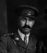 At age 18 he enlisted in the army and served in South Africa during the Boer War, obtaining the rank of Lieutenant in 1901. After demobilization he returned to Tasmania, where he lived until 1907. He then joined the railway company of the State of Victoria, and worked as a salesman at Moe. Married to Mary Cecilia Bennett in 1910, he became a widower in 1914, and in April of the same year he re-enlisted in the Army. Joining the Australian Imperial Force as an enlisted man, he was promoted to lieutenant a month later. During the First World War he served in Egypt, Gallipoli, Belgium, and France. He was promoted to captain in August 1915. After officers' training at the military school of Aldershot in England late in 1916 he was promoted to major. He was given command of the 27th Battalion in October 1917, became a lieutenant colonel in January 1918,[2] was awarded the Distinguished Service Order in November, and was named Companion of the Order of St Michael and St George in 1919.