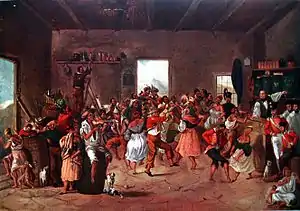The patrons of I'Ons were largely military types who commissioned portraits of the local Xhosa chiefs, such as Sandile and Khama. I'Ons was outstanding in depicting the Bantu and Hottentot passers-by. The images of these 'native characters' are regarded as his most important works, reflecting a great deal of sensitivity and skill in their portrayal, and likened to those of Adriaen van Ostade.[1] As is often the case with artists who have to produce potboilers to survive, their best work is neglected in the interests of financial exigencies.[2]