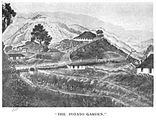 Young was a keen sport hunter and along with Frederick Shore he set up a hunting lodge near Mussoorie on a slope at Camel's back. This area was later to become an important British settlement in the hills. Young built a bungalow in Mussoorie called “Mullingar” after his home in Ireland. Young introduced tea and potato cultivation into the region.[note 8] He retired with the rank of Major General in 1854 (promoted to General in 1865[3])[note 9] to live in Fairy Hill, Bray, Ireland. He married Jeanette Jamesina (13 February 1808, Berhampore – 10 April 1852, died in Dinapore, buried in Calcutta) daughter of Colonel John Jenkins Bird in 1825[note 10] and they had eight children. He died at The Albany, his Dublin townhouse aged 88.[5]