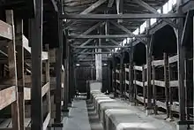 Hirsch persuaded Böhm to allocate a second barracks for children aged three to eight so that the older children could prepare a performance of Snow White, which the SS had requested.[57] The play was performed on 23 January 1944 with many SS men in attendance.[58] By imposing strict discipline on the children, Hirsch made sure that there were no acts of violence or theft, otherwise common in concentration camps.[51] He was extremely strict about the children's hygiene, insisting that they wash daily even in the frigid winter of 1943–44 and carrying out regular inspections for lice.[54][52] Due to Hirsch's efforts, the mortality rate for the children was nearly zero, compared to the overall mortality of about 25% of the residents of the family camp in the first six months.[14][59] The children appreciated Hirsch's efforts on their behalf, and threw a surprise party for him on 11 February 1944, his 28th birthday.[60][31] In February 1944, a delegation from the Reich Security Main Office and the German Red Cross visited the family camp. The visitors were most interested in the children's barracks, which was the only attempt to organize education at Auschwitz. The most notable visitor, Adolf Eichmann, commented favorably about the cultural activity of the children at Birkenau.[61][62]