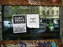 - ↑ Tsang, Phyllis (29 April 2011). "Ai Weiwei backers project graffiti image onto landmark buildings" Archived 10 July 2011 at the Wayback Machine.