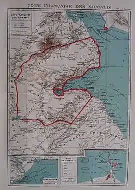 - ↑ Thompson & Adloff 1968, p. 15: Djibouti, terre française, droit rester française! ("Djibouti, French land, must remain French!")..