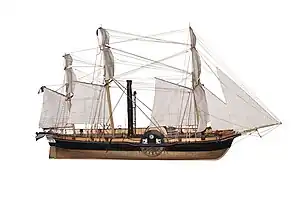 ![]() 1/100th Model of the French paddle steamer corvette Sphinx. Made by the model workshop of the Musée de la Marine in 1962, on display at Toulon naval museum. | |