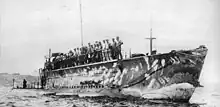 She was armed with four internal 45 cm (17.7 in) torpedo tubes in the bow and two Drzewiecki drop collars in the forecastle. Two reloads were stowed internally, which gave her a total of eight torpedoes.[5] During World War I, the boat probably used Modèle 1911V torpedoes. These had a 110-kilogram (240 lb) warhead and a range of 2,000 meters (2,200 yd) at a speed of 36 knots (67 km/h; 41 mph).[6]