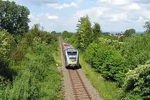 The Friedrichsdorf–Friedberg railway is a single-track, non-electrified branch line in the German state of Hesse. It is listed as timetable route 636 and integrated in the Rhein-Main-Verkehrsverbund as line 16.