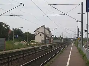 Friedrichstal (Baden) station is a railway station in the municipality of Stutensee-Friedrichstal, located in the Karlsruhe district in Baden-Württemberg, Germany.