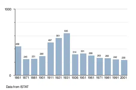 - ↑ "Popolazione Residente al 1° Gennaio 2018". Italian National Institute of Statistics. Retrieved 16 March 2019.