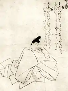 Teika's grandfather was the venerable poet Fujiwara no Toshitada. His father was Fujiwara no Shunzei (1114–1204), a well known and greatly respected poet (and judge of poetry competitions), who had compiled the seventh Imperial anthology of waka (the Senzai Wakashū). His niece would also become a well-respected poet of waka and renga, known as Kengozen or Shunzei's Daughter, whom he would occasionally seek out for poetic advice. His elder brother, Fujiwara no Nariee (sometimes romanized as "Nariie"; 藤原成家), would be somewhat successful in court, but not nearly as much as his niece.[8] Teika's foster-brother, the priest Jakuren or "Sadanaga" c. 1139–1202 would be successful as a poet although his career was cut tragically short; he had been adopted by Shunzei when Shunzei's younger brother "retired from the world".[9]