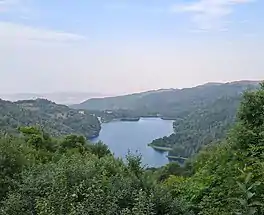 Göygöl (lit. 'Blue Lake') is a natural impounded lake in Azerbaijan. It is situated at the footsteps of Murovdag, not far from Ganja in the Goygol District.[2] It is one of the largest lakes in Azerbaijan. The lake is 0.78 km2 and is 1553.3 metres above sea level. Its length from south to north is 2800 metres, and its maximum width is 800 metres.[3]