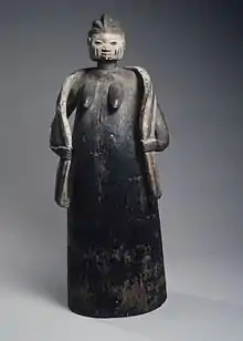 Iyalase, the Chief Priestess, meaning "mother of the shrine"[1] is the head of this Gelede society. She is the main person of communication between Iya Nla, the community, and the Gelde Society. Iyalase's main function, outside of a point of communication, is being in charge of the Gelede shrine, Ase, where she is the only one allowed to enter.