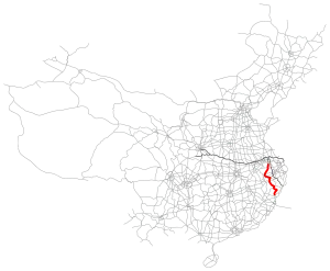 The Liyang–Ningde Expressway (Chinese: 溧阳-宁德高速公路), commonly referred to as the Lining Expressway (Chinese: 溧宁高速公路) is an expressway that connects Fu'an, Ningde and Liyang, Changzhou in China. It is a spur of G40 Shanghai–Xi'an Expressway and it travels through the provinces of Jiangsu, Zhejiang and Fujian. It is split into many discontiguous sections.[1][2][3]