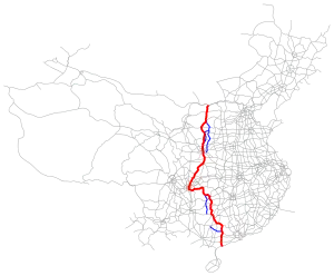 Baotou, Ordos, Yulin, Yan'an, Tongchuan, Xi'an, Ankang, Dazhou, Chongqing, Qianjiang, Jishou, Huaihua, Guilin, Wuzhou, Maoming