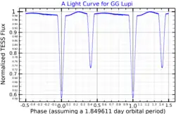 - ↑ "V* GG Lup -- Eclipsing Binary". SIMBAD. Centre de données astronomiques de Strasbourg. Retrieved 2022-12-10.