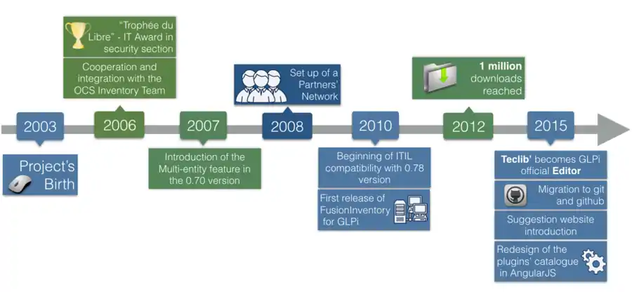 In 2009, Teclib’ started to integrate the software, developed the GLPI code and implemented new features. During summer 2015, the GLPI's Community leaders decided to transfer the roadmap management and the development leadership to Teclib’, so that Teclib´becomes editor of the GLPI system ensuring the software R&D.[6]