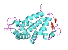 Gasdermin D (GSDMD) is a protein that in humans is encoded by the GSDMD gene on chromosome 8.[5] It belongs to the gasdermin family which is conserved among vertebrates and comprises six members in humans, GSDMA, GSDMB, GSDMC, GSDMD, GSDME (DFNA5) and DFNB59 (Pejvakin). Members of the gasdermin family are expressed in a variety of cell types including epithelial cells and immune cells. GSDMA, GSDMB, GSDMC, GSDMD and GSDME have been suggested to act as tumour suppressors.[6]