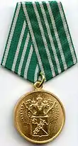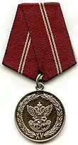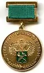 Highest departmental award of the GUSP. Awarded to personnel of the Main Directorate of the GUSP of the Russian Federation and to other persons, who have made a significant contribution to the development and implementation of state policy, regulatory and normative-legal regulation in the sphere of activities of the GUSP, in the development of the GUSP, in the implementation of the powers conferred to the GUSP, who were previously awarded departmental awards of the GUSP: for long-term and effective state civil service; for reasonable initiative, diligence and distinction in the service; for many years of conscientious and impeccable work.[13][20] |