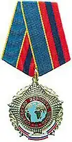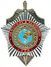 Initially awarded to the most outstanding members of the First Chief Directorate of the KGB of the USSR, retained post-1991 by the newly formed Foreign Intelligence Service of Russia. First awarded on the occasion of the 70th anniversary of the Soviet foreign intelligence service. The award includes many socio-economical rewards and advantages.[7] |
