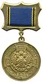 Awarded to military personnel of the Foreign Intelligence Service of the Russian Federation for 15 years of good service. Inscription on reverse "СЛУЖБА ВНЕШНЕЙ РАЗВЕДКИ РОССИЙСКОЙ ФЕДЕРАЦИИ" (FOREIGN INTELLIGENCE SERVICE RUSSIAN FEDERATION).[6] |
