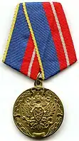 № ? | 1996-05-22 | Awarded to military and civilian personnel of the Russian Federation's Armed Forces, and in some cases – ordinary citizens of Russia or foreign citizens for merits in strengthening the brotherhood of arms and fostering military cooperation with friendly nations; for great personal contribution to strengthening the combat and mobilization readiness of federal bodies of governmental communications and information; for special distinction in exercises, manoeuvres and other services to the Federal Agency for Government Communications and Information.[65] Inscription on reverse "ФАПСИ" (FAPSI). No further award of the medal was made following the July 2003 absorption of FAPSI by the FSB. |