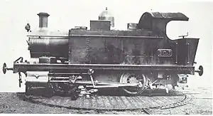 Originally built as an oil-burning locomotive 'on Holden's system'[2][lower-alpha 1], it had an unusual boiler containing a firebox constructed as an arched chamber made from fire-bricks, opening to the firetubes in front, and with two oil-burning nozzles at the back. Over this was mounted a short saddle tank for the oil fuel. There was no outer firebox, but the 8 ft × 5 ft (2.438 m × 1.524 m) boiler, pressed to 180 psi (1.2 MPa), contained 289 firetubes in the lower part and a large steam space above.