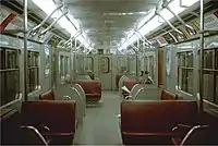 As the only Toronto subway cars to be manufactured outside of Canada, its design was mainly influenced by the Q38 and R stocks of the London Underground.[2] Since the TTC's original concept for the subway system foresaw the use of rapid transit cars derived from the Presidents' Conference Committee (PCC) design of its streetcar network, the cars were also equipped with bulls-eye incandescent lighting similar to that of a PCC,[3] and a small operator's cabin located in the front left corner of each car. To this end, it was influenced by the 6000-series cars used on the Chicago "L", felt through the work of DeLeuw, Cather & Co. of Chicago, whom the TTC contracted as a consultant for the rapid transit project.