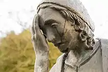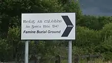 Tourism is an important part of the local economy in Gaeltacht na nDéise. Sites in the area include Reilig an tSléibhe, a famine graveyard located in An Seanphobal. Dating from the Great Famine, there are possibly 3 mass graves in the field that were used to cope with the large numbers and as the deaths declined, it is believed single graves were dug. In 1995, for the 150th commemoration of the famine, a memorial was created which was inscribed with part of Máire Ní Dhroma's poem, Na Prátaí Dubha. Also to be seen at the site is a solitary sculpted figure in mourning, at the side of the field. This sculpture was created by Seán Creagh; he died before it was complete and so the fibreglass structure that would have been used to create the mould for the final piece was erected instead. None of the graves at the site are marked in any way. Within the field there is, however, a headstone where G. R. Jacobs from the HMT Bradford is buried. He died at sea in 1916.[6]
