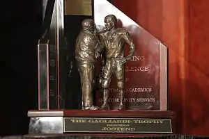 The Gagliardi Trophy was first presented in 1993 to the Outstanding Division III college football player of the year by the Jostens Company and the J-Club of Saint John's University in Minnesota. Since that time, the award has become one of the leading collegiate football awards in Division III football, honoring excellence in athletics, academics and community service. The award is named for John Gagliardi, head football coach of Carroll College 1949 to 1952 and Saint John's University in Minnesota from 1953 to 2012. The trophy was presented by the Salem Rotary Club each year in Salem, Virginia until 2018.