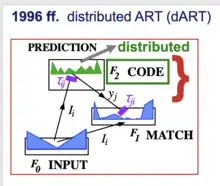 - ↑ Archival journal article describing the Distributed ART (dART) model is: Carpenter, G.A. (1997). Distributed learning, recognition, and prediction by ART and ARTMAP neural networks. Neural Networks, 10(8), 1473-1494.See Figure 1b.