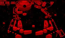 The development of Galactic Pinball was managed by Gunpei Yokoi, who created the Virtual Boy.[3][2] It was directed by Kenji Yamamoto, who composed the sound alongside Masaru Tajima.[2] It was shown during the Virtual Boy's debut alongside Teleroboxer.[6] It has been called at varying points as Space Pinball, Virtual Pinball, and Pinball VB.[7][8][9] It was one of the launch games for the Virtual Boy, and was released on July 21, 1995 in Japan and on August 14, 1995 in the United States.[4] Like all Virtual Boy games, Galactic Pinball uses a red-and-black color scheme and parallax visuals to simulate three-dimensional depth.[10]