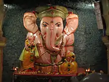 The Ganapati temple of Redi is located approximately 30 km from Vengurla, in the small village of Redi, Maharashtra, India. The town in which this temple is situated contains iron ore mines and the Ganpati (Ganesha) idol was found in one of the mines near Rewati port in 1976. A local person by the name of Sadashiv Kambli supposedly visualized a buried statue of Ganesha in his dream and convinced local workers to dig out the statue from the seashore. After an investigation it has been found that the statue was made by the Pandava during their rule. The statue is approximately 6 ft in height and 4 ft in width. The Ganesh idol is in a sitting position and is Dwibhuja (two arms) as compared to rest of the idols which are generally Chaturbhuja (four arms). The mouse idol (vahana) was found on further excavation after two months.