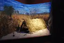 The museum's facade is noted for its simplicity, as it shows only the access gate framed in quarry. The interior is small with only 7 permanent exhibition rooms.[3] Of the exhibition rooms, the Loma San Gabriel Stage room is of particular significance, as it depicts types of housing and instruments (estimated to be around 3,000 years old) from the Loma San Gabriel culture, perhaps the forerunner of the contemporary Coras, Huichols, and Tepehuanes who still inhabit Durango.[3]