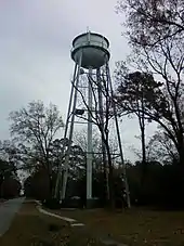 ![]() The geographical reference of this water tower, located at the intersection of Nelson and Rommel avenues, is 32°6′49.7″N 81°9′16.4″W / 32.113806°N 81.154556°W. |