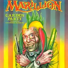 "Garden Party (The Great Cucumber Massacre)" is a song by the British neo-progressive rock band Marillion. It was the second single released from their debut album Script for a Jester's Tear. It reached number 16 in the UK Singles Chart in 1983, the band's biggest singles chart success prior to 1985.[1] The song is a parody of social elitism and snobbery. The B-side is a live version of "Margaret" (recorded at Edinburgh Playhouse, 7 April 1983). The 12" single includes a live version of "Charting The Single" (recorded at Hammersmith Odeon, 18 April 1983).