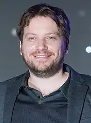 Gareth Edwards was born on 13 July 1975 in Nuneaton, Warwickshire. He is of Welsh parentage.[6] Edwards wanted to direct his own films since childhood, stating that "Star Wars is definitely the reason that I wanted to become a filmmaker".[7] He attended Higham Lane School, followed by college at North Warwickshire College of Technology and Art (now NWSLC), completing a BTEC National Diploma in Audio Visual Studies. Edwards studied film and video at the Surrey Institute of Art & Design, University College in Farnham, graduating in 1996. In 2012, he received an honorary Master of Arts from UCA. Edwards got his start in visual effects, creating digital effects for shows including Nova, Perfect Disaster and Heroes and Villains, for which he created 250 visual effects. In 2008 he entered the Sci-Fi-London 48-hour film challenge, for which a movie had to be created start-to-finish in two days and within certain criteria. Edwards won the contest with his short film Factory Farmed and went on to write and direct Monsters, his first feature. Edwards created the visual effects for Monsters using off-the-shelf equipment. Besides the two main actors, the crew consisted of just five people.[8]