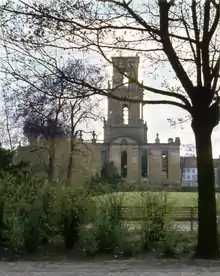 The Garrison Church (German: Garnisonkirche) was a Protestant church in the historic centre of Potsdam. Built by order of King Frederick William I of Prussia according to plans by Philipp Gerlach from 1730 to 1735, it was considered as a major work of Prussian Baroque architecture. With a height of almost 90 metres (295 feet), it was Potsdam's tallest building and shaped its cityscape. In addition, the Garrison Church was part of the city's famous "Three Churches View" together with the St. Nicholas Church and the Holy Spirit Church. After it was damaged during the British bombing in World War II, the East German authorities demolished the church in 1968. After the German reunification, the Garrison Church is currently being rebuilt as a centre for remembrance and reconciliation.