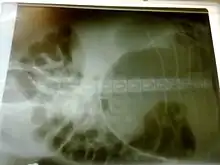 - 1 2 Parton A, Volk S, Weisse C (2006). "Gastric ulceration subsequent to partial invagination of the stomach in a dog with gastric dilatation-volvulus". J. Am. Vet. Med. Assoc. 228 (12): 1895–900. doi:10.2460/javma.228.12.1895. PMID 16784379.