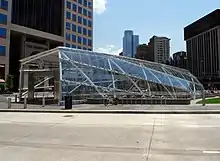 Gateway station is a station on Pittsburgh Regional Transit's light rail network,[2] located in Pittsburgh, Pennsylvania. Until October 30, 2009, it was the network's westernmost extent within downtown Pittsburgh. The Port Authority closed Gateway Center as part of construction work on the North Shore Connector project, and a new station opened in 2012 (though its name was truncated from "Gateway Center" to simply "Gateway"). The former station entrance was demolished and a new station was built.[3] Gateway station and North Side station lie at the southern and northern ends of the Allegheny River Tunnel, respectively.