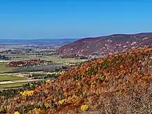 At the end of the Gatineau Parkway, Champlain lookout provides views of the Ottawa Valley from high atop the Eardley Escarpment. When leaves change colour in fall, tourists and locals are drawn to the park's lookouts, roads, and pathways to enjoy the autumn scenery.[48]