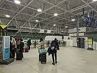 The ticket office is staffed for ticket sales and enquiries, supplemented by ticket machines capable of handling online bookings usually available on a round-the-clock basis.[10] Automated teller machines, payphones and e-mail access points are installed on the main concourse. There are coin-operated trolleys for luggage and a left luggage facility.[10] On-site food and drink outlets are present. Toilets are available and baby changing facilities and additional toilets can be found in the adjacent South Terminal. There is no car parking facility.[10] Transport for London's (TfL) Oyster cards and contactless cards are accepted for travel at the station.[13]