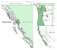 It is found in western Alaska, British Columbia, Washington and Oregon and along much of the California coast. It grows as far north as Baranof Island, Alaska.[3] Western poison oak is a common associate in the California Coast Ranges.[10]