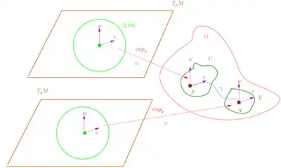 where is the unique geodesic with and tangent and is chosen small enough so that for every the geodesic is defined. So, if is complete, then, by the Hopf–Rinow theorem, is defined on the whole tangent space.