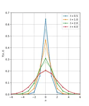 This is the discrete analog of the continuous Gaussian in that it is the solution to the discrete diffusion equation (discrete space, continuous time), just as the continuous Gaussian is the solution to the continuous diffusion equation.[10][11]