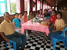 Christian Dayaks replace the traditional offering ceremony with a prayer session within the family room. The associated church service leader is called tuai sembiang.